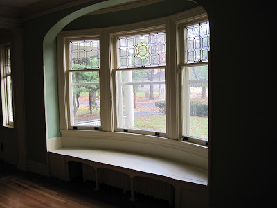 | Trying to decide if we want these built ins. See that window on the left? It's actually a door to a side porch. Not sure why that was done. Another reason I'm not sure we will keep the built ins. |